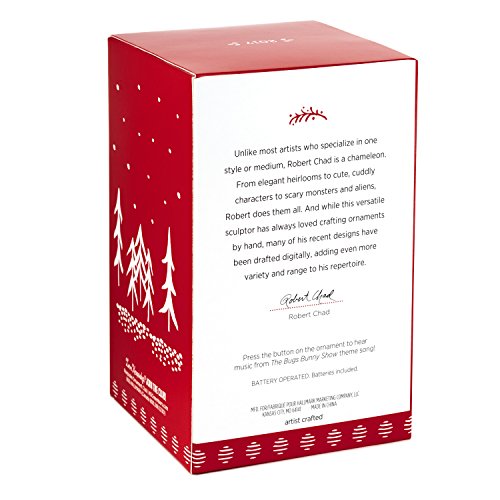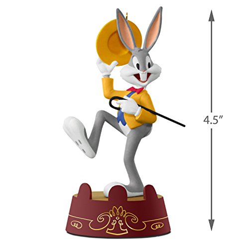 Press the button to hear a version of "The Bugs Bunny Show" theme song. This Hallmark Keepsake Ornament measures 2.4 x 4.5 x 2.1 inches and comes in a 2.9 x 5 x 2.9 gift box.