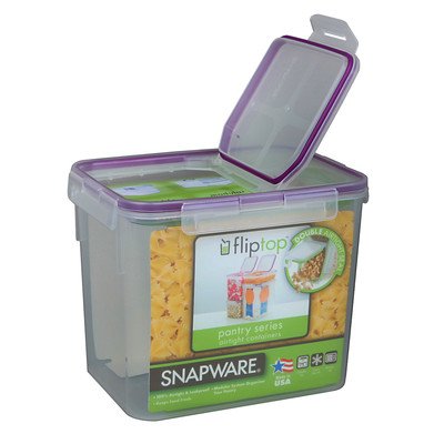 Snapware 4012 17 Cup Rectangle Airtight Food Storage Container with Fliptop LidSnapware Airtight Plastic Food Container is 100% airtight and leak-proof. Its easy open-and-close four latch lid keeps food fresh. And its stackable design is convenient and space-saving.Snapware 4012 17 Cup Rectangle Airtight Food Storage Container with Fliptop Lid Features: Ideal for dry food storage Silicone gaskets and tight snapping latches seal containers 100% airtight for long lasting food freshness Modular stacking system is space saving inside the pantry Features Flip top double airtight seals for convenient pouring, scooping and snacking Rectangle Size: 8.5" x 6.25" x 6.75" 17 cup capacity BPA free polypropylene container and lid Refrigerator and freezer safe Hand wash only; remove and wash gasket before use to optimize seal Snap lock lid with silicone seal opens and shuts easily. Made in the USA Snap lock lid with silicone seal opens and shuts easily. Snapware Lifetime warranty