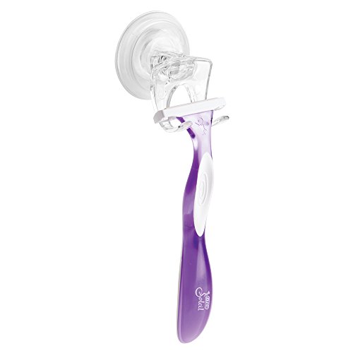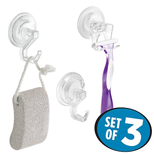 mDesign Power Lock Suction Bathroom Shower Razor Holder and Pack of 2 Suction Hooks, 3 pc Set - Clear