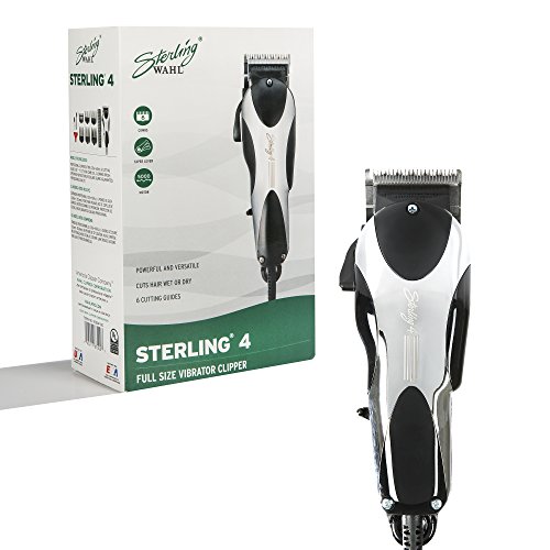 PRODUCT SPECIFICATIONS: Wahl Professional Sterling 4 Clipper (#8700) measures 6.25 inches in length and weighs 16 ounces (1lb). Features V5000 Electromagnetic Motor, and 1005 3-hole blade. Made in U.S.A.