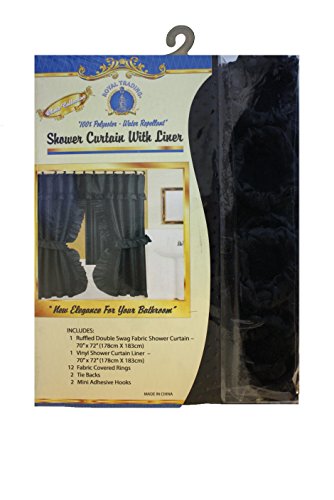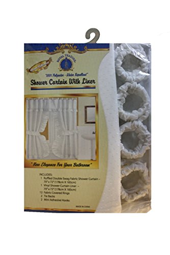 Double Swag Shower Curtain with PVC Liner, Hooks and Tiebacks-White. Double swag shower curtain with liner and 12 plastic shower rings covered with plastic