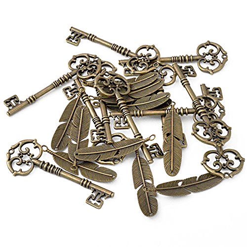 Steampunk Large Skeleton Keys Leaf (20pcs Charm Set) Antique Bronze Brass Jewelry Making Decorative & Replacement