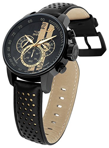 Intricate in design, this S1 Rally from Invicta has a colorful chronograph and GMT feature, making for a high quality watch in precise function. A black genuine leather strap with open holes resembling a jersey-type material gives it a sporty look that any man can enjoy.