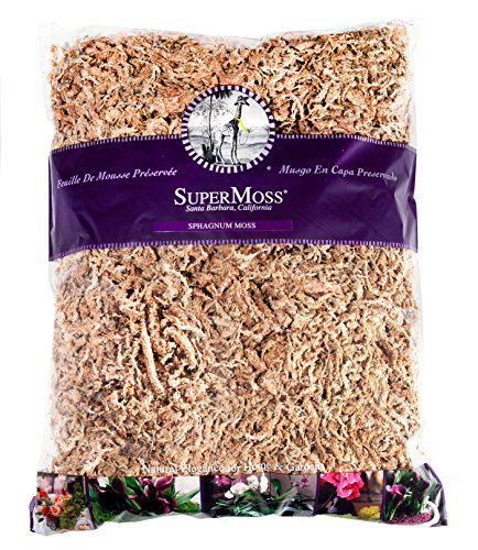 Super moss Orchid/Nursery Sphagnum Moss Dried Off White Natural Mini Bale Long fiber, premium grade, long lasting sphagnum. Absorbs up to 17 times its weight in water. Exceptional moisture retention, allows plants to breath. Sustainable harvest product. Excellent for anchoring roots in Orchid potting. Reduce watering frequency of hanging basket and outdoor pots. A top layer on potted plants reduces moisture loss. Soil amendment, ground cover and pot dressing.Feature