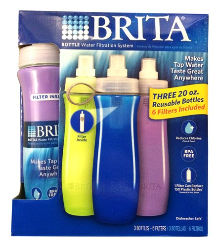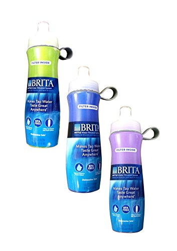 Brita Sport Water Filter Bottle, 20-Ounce, Green/Blue/Purple (Pack of 3)