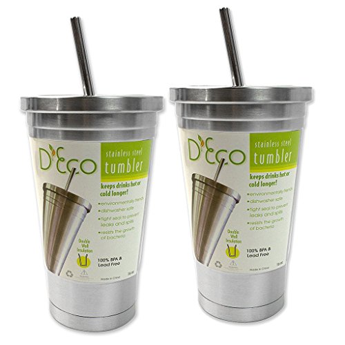 Stainless Steel Tumbler with Straw- Hot and Cold Double Wall Drinking Mug- 16 oz.: This environmentally friendly drinking tumbler with included stainless steel straw is the perfect way to keep your beverages hot or cold on the go. It holds a generous 16 ounces of liquid and measures 7 inches tall (the straw is 8.5 inches tall). Just like a Yeti tumbler. It features a tight seal so that it won't leak. 100% BPA and lead free, dishwasher safe.