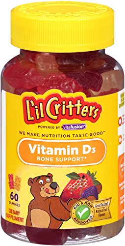-. Binding : Health and Beauty -. Brand : Lil Critters -. EAN : 0764442661846 -. Feature : Bone support / The American Academy of Pediatrics recommends kids get 400 IU of vitamin D per day / An excellent source of vitamin D / Natural berry, cherry & blackberry flavors / ChefsBest Award for Best Taste -. IsAdultProduct : 0 -. Label : L'il Critters -. Manufacturer : L'il Critters -. MPN : CH1101883 -. NumberOfItems : 3 -. PackageQuantity : 3 -. PartNumber : CH1101883 -. ProductGroup : Health and Beauty -. ProductTypeName : HEALTH_PERSONAL_CARE -. Publisher : L'il Critters -. ReleaseDate : 2015-03-19 -. Studio : L'il Critters -. Title : L'il Critters Vitamin D Gummy Bears, 60 count, Bottles (Pack of 3) -. UPC : 764442661846