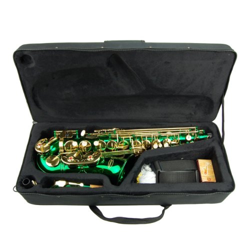 Merano E Flat Green Alto Saxophone with Zippered Hard Case + Mouth Piece,Screw Driver, nipper. A pair of gloves, Soft Cleaning Cloth