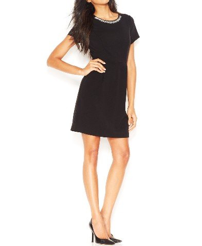 Kensie Womens Beaded Neckline Short Sleeve Formal Dress