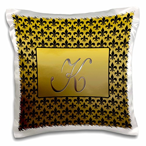 Elegant letter K embossed in gold frame over a black fleur-de-lis pattern on a gold background pillow case is a great way to add a splash of style to any room. The unique design of this 16x 16Throw pillow case is sure to turn heads. Made of a durable satin material with a rear fold over closure. Image printed on one side. Machine washable, cold water, no bleach, turn inside out. Pillow insert not included.Feature