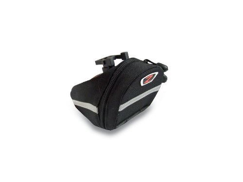 -. Feature : Z-Fit system for one-click mounting to Z-Fit compatible saddles / Hook and loop strap for standard rail mounting / Tough nylon material with water resistant coating / High-viz reflective stripe for added safety / 140 L x 80 W x 110 H