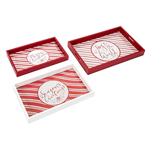 Benzara Christmas Candy Stripe Trays-Set of 3-Red