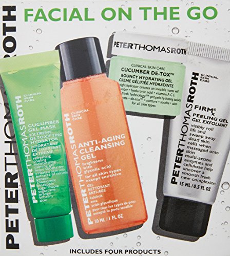 -. Binding : Health and Beauty -. Brand : Peter Thomas Roth -. Color : black -. Department : Unisex -. EAN : 0642213389642 -. Feature : Skin Friendly Ingredients / Help To Boost Your Appearance / Keep It Smooth And Radiant -. IsAdultProduct : 0 -. Label : PerfumeWorldWide, Inc. -. Manufacturer : PerfumeWorldWide, Inc. -. Model : U-SC-4534 -. MPN : 214392 -. NumberOfItems : 1 -. PackageQuantity : 1 -. PartNumber : 214392 -. ProductGroup : Beauty -. ProductTypeName : BEAUTY -. Publisher : PerfumeWorldWide, Inc. -. ReleaseDate : 2017-05-07 -. Size : Medium -. Studio : PerfumeWorldWide, Inc. -. Title : Peter Thomas Roth 4 Piece Facial On The Go Kit -. UPC : 642213389642