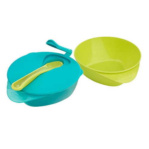 -. Feature : 2 x bowls with leak-proof lid and spoon / Easy-scoop triangular base / Stay-clean spoon cover makes them ideal for travel / Dishwasher, microwave and sterilizer safe / Suitable for babies aged 7 months plus