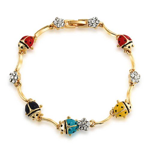[blink 쥬얼리] Bling Jewelry금 도금 멀티 컬러 컬러풀 무당벌레 와 크리스탈 유리 팔찌19cm [임포트]