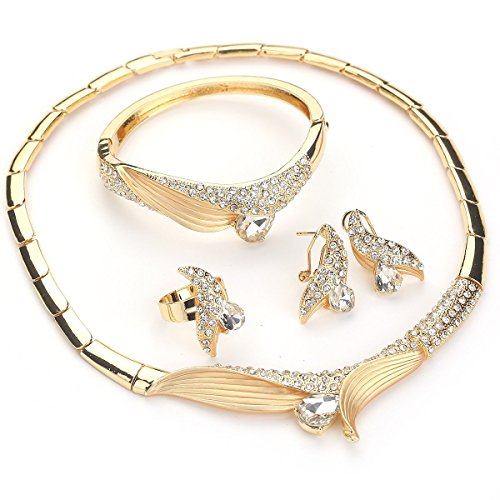 -. Title : Moochi Zircon Curved Shape Gold Plated Crystal Necklace Earrings Bracelet Ring Jewelry Set (White)