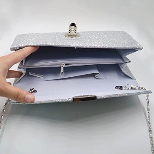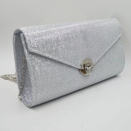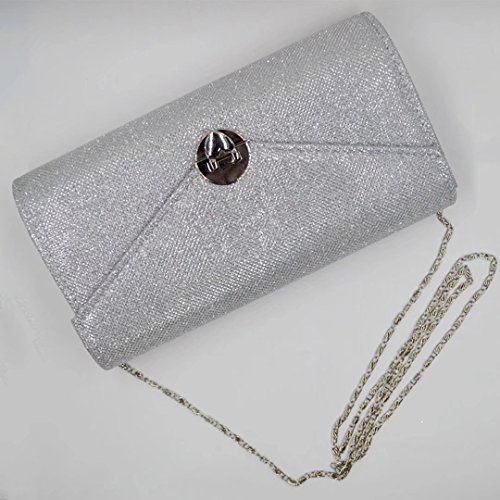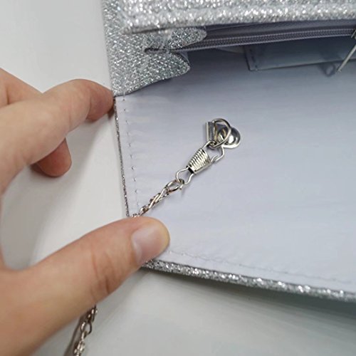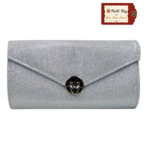 Heidi Womens Glitter Shimmer Bling Clutch Handbag Classy Evening Party Grab Clutch Chain Shoulder Bag Purse