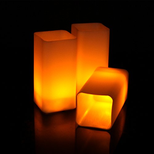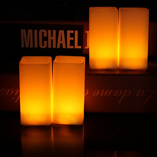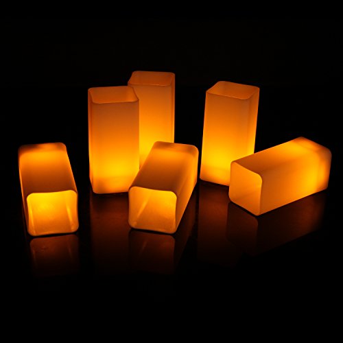 Flameless Flickering LED Candles Square Pillar Fake Candle Electric Tealight for Home Decor Wedding Parties, Amber Yellow Bulb, Pack of 12