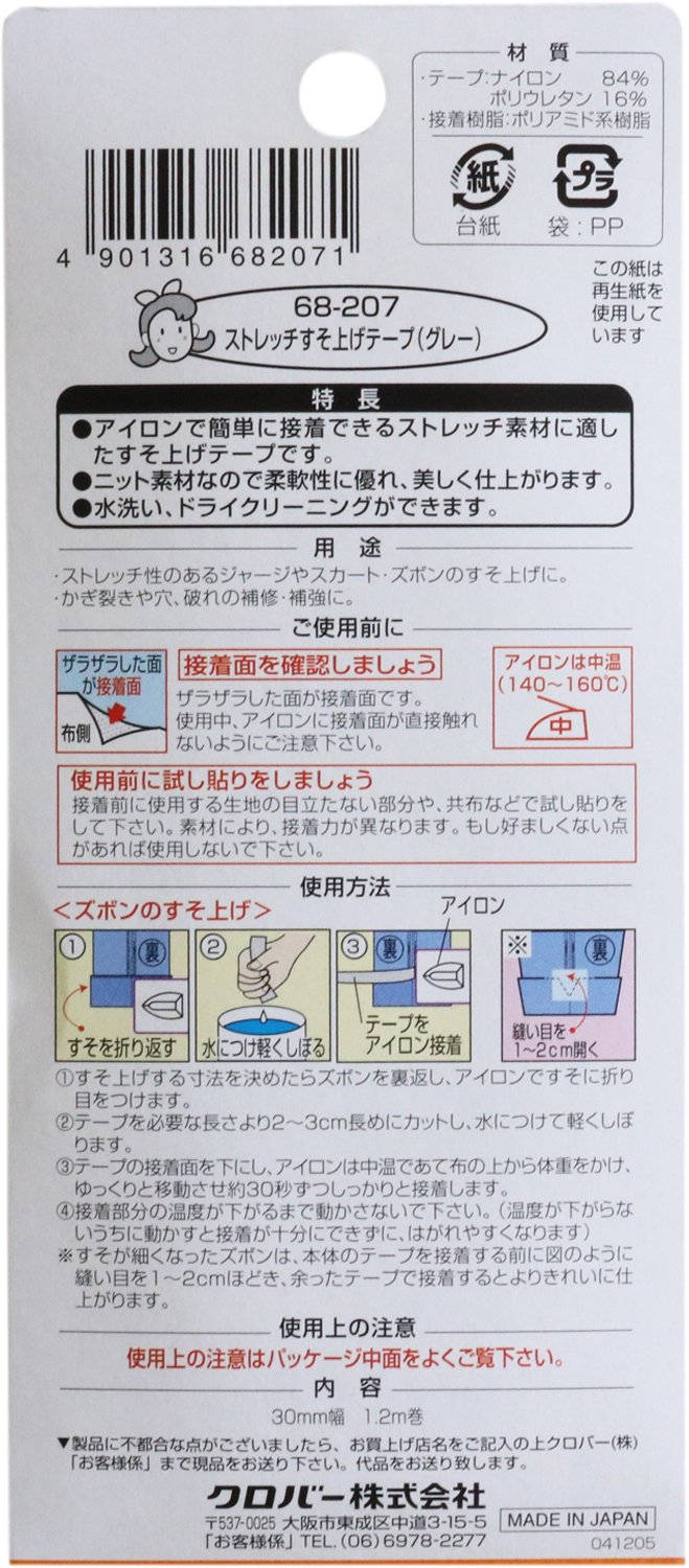 Clover stretch hemming tape gray [68-207] (japan import)