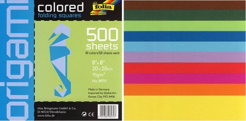 Square Colored 8-by-8-Inch Origami Paper, 500 Sheets