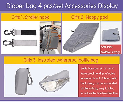 3.Package include: Diaper Backpack*1,Changing pad*1, Insulated Sleeve*1, Stroller strap2