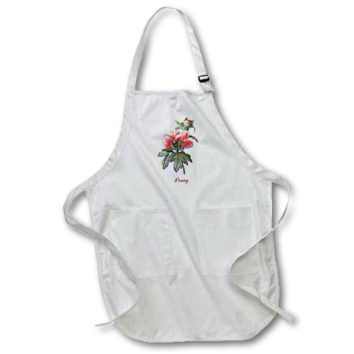 3dRose Pretty Pink Peony Flower with Bud Botanical Print - Full Length Apron, 22 by 30-Inch, White, with Pockets (apr_173796_1)