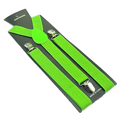 (Suspenders)/Accessories/Suspenders Cummerbunds/DIRECT FROM USA/Unisex Men/Women Lime Green Glitter 1" Clip-on Braces Elastic Suspenders