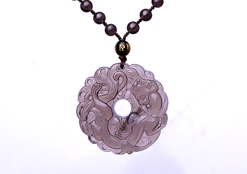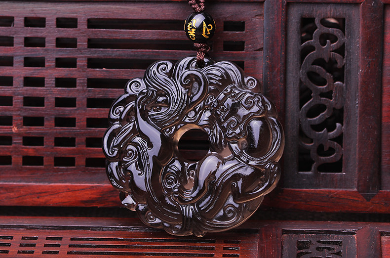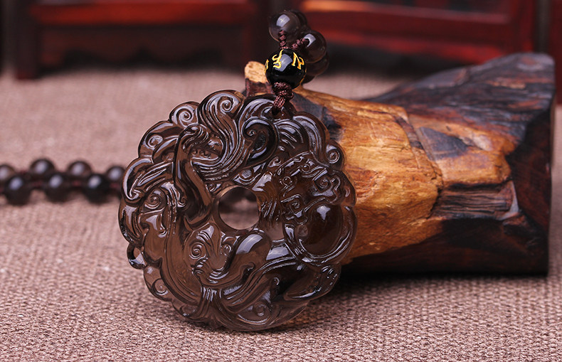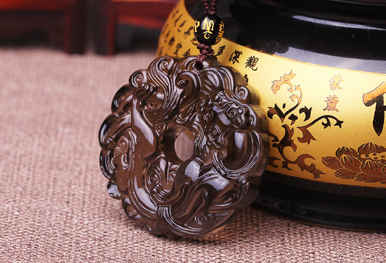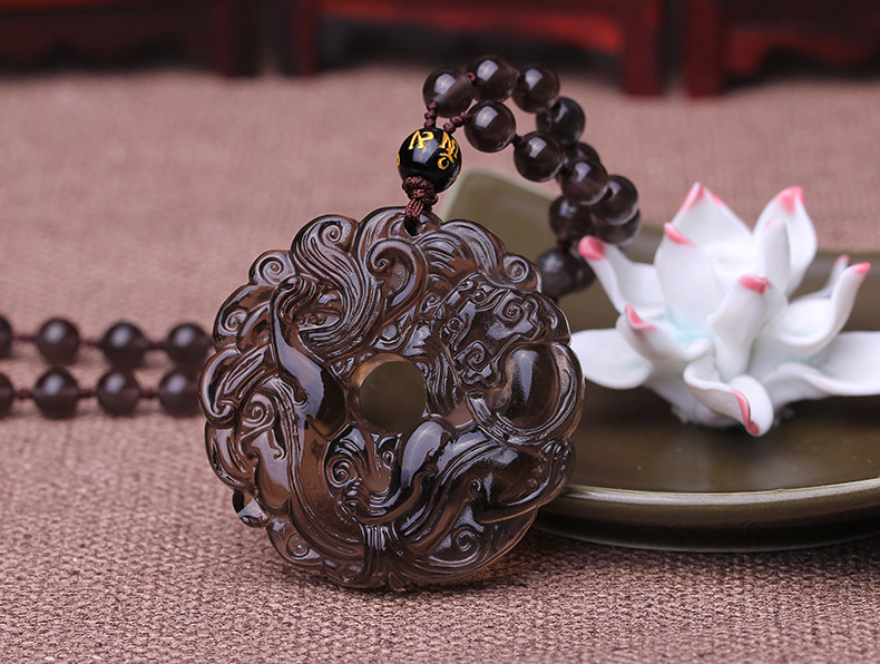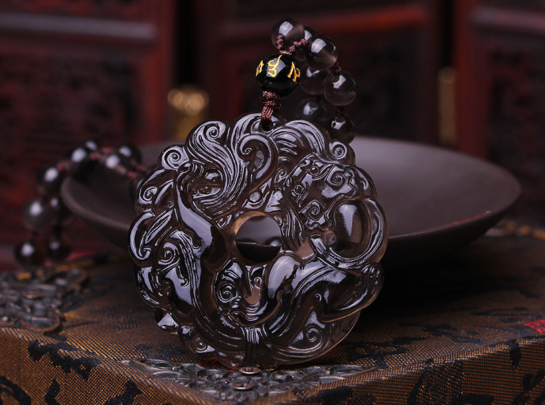 开光天然黑曜石草龙貔貅吊坠招财男士项链开运保平安女情侣水晶