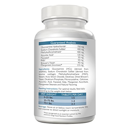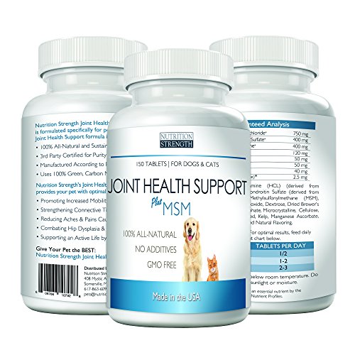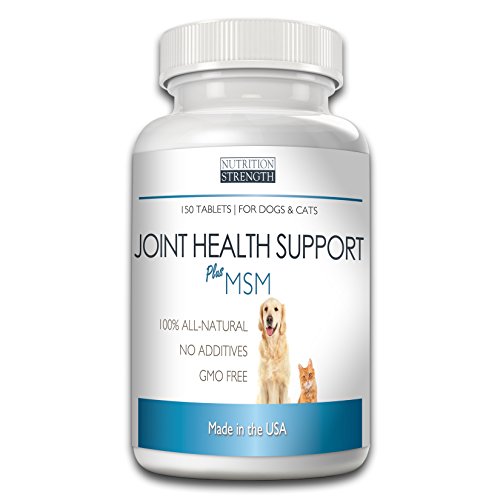 IDEAL GLUCOSAMINE AND MSM DOSAGE FOR YOUR PET: Nutrition Strength's Joint Health Support Plus MSM for Dogs and Cats chewable tablets have the ideal mixture of health-boosting ingredients like glucosamine for dogs and cats plus MSM which will give your pet its energy back, as recommended by leading veterinarians. 150 chewable tablets of joint support for dogs and cats per bottle.
