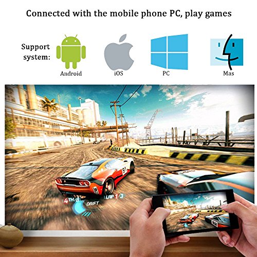 Wireless Display Projector: Wireless connecting with iPhone, Samsung, Nokia and any other smart phones under built-in WiFi environment system, you can enjoy anything on big screen at the same time with your smartphone.