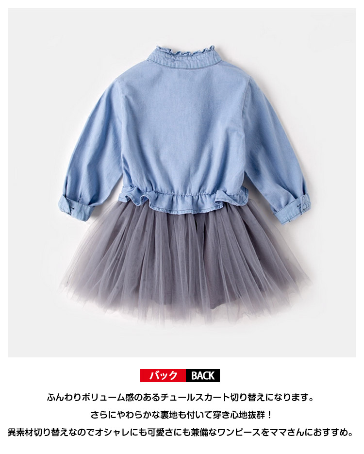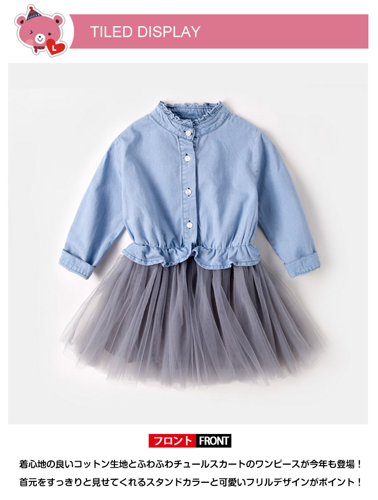 | 着心地の良いコットン生地とふわふわチュールスカートのワンピースが今年も登場!首元をすっきりと見せてくれるスタンドカラーと可愛いフリルデザインがポイント!ふんわりボリューム感のあるチュールスカート切り替えになります。さらにやわらかな裏地も付いて穿き心地抜群!異素材切り替えなのでオシャレにも可愛さにも兼備なワンピースをママさんにおすすめ。 | |