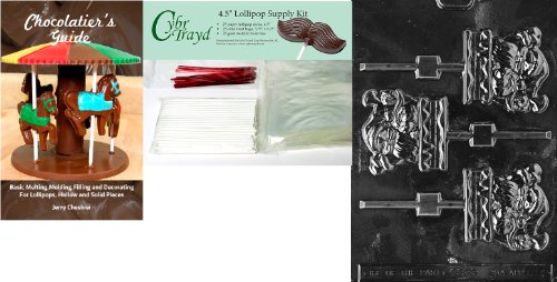 Cybrtrayd 45stK25RBk-C092 Waving Santa Lolly Chocolate Mold with Chocolatier's Bundle of 25 Lollipop Sticks, 25 Cello Bags, 25 Red Twist Ties and Chocolatier's Guide