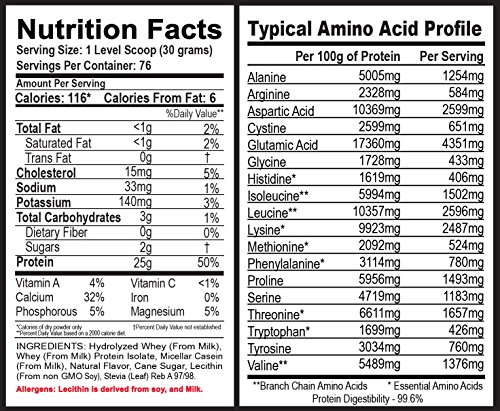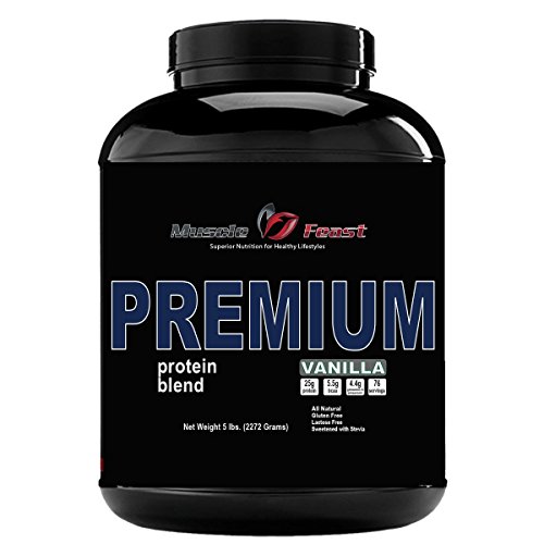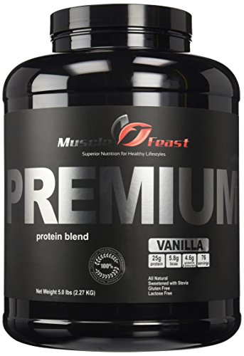 Studio : Muscle Feast, LLC Publisher : Muscle Feast, LLC Binding : Health and Beauty Product Description Muscle Feast Premium Blend Protein is an equal mix of our cold processed whey protein isolate, cold processed micellar casein and hydrolyzed whey protein. Our Premium Blend Protein is 100% pure and natural without any artificial ingredients or fillers. This is an ideal blend of fast and slow proteins. Your muscles will begin to absorb the enzyme derived hydrolyzed whey protein within 10 minutes and the whey isolate protein will begin to absorb within 30 minutes. The micellar casein protein will continue to feed your muscles for up to 7 hours making this protein one of the most diverse and high quality proteins you can take. Warning: Due to the bitterness of hydrolyzed whey protein this product is not as smooth tasting as our Whey Protein Isolate and 100% Whey products. If taste is a concern for you, this might not be the right product. Take one or more scoops as needed in 8 oz of milk or milk substitute. Add more or less liquid until the desired consistency and flavor is achieved. Our proteins may be mixed in water but will taste better in milk or a milk substitute because we do not add xanthan or guar gums (thickening agents). Muscle Feast Premium Blend Protein is flavored with all natural ingredients and sweetened with Stevia Reb A 97 with just one gram of sugar added per serving to eliminate any adverse taste that is commonly associated with Stevia. Drink immediately or keep refrigerated. Use as needed one or more times per day to meet your daily targeted levels of protein. We guarantee our supplements to be the freshest and purest available: Muscle Feast, LLC supplements are manufactured under the strictest HACCP, FDA, and Kosher standards, producing the highest quality and purest supplements available. Our raw ingredients undergo state of the art analysis to ensure zero impurities and strict adherence to product labeling. When it comes to quality you can't beat Muscle Feast. 0