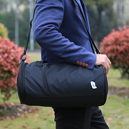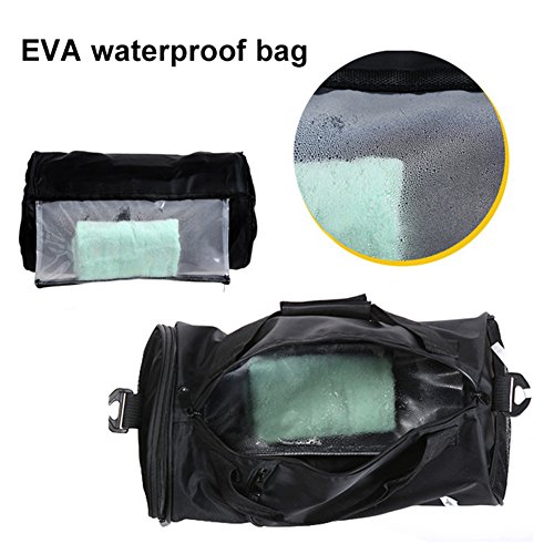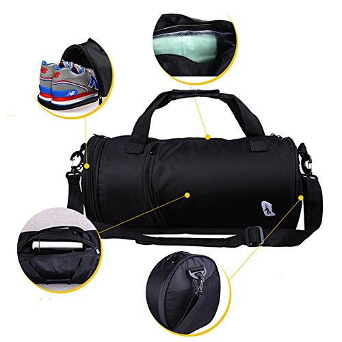 -. Feature : ALL-ROUND DESIGN:The duffel bag uses double water-resistant and smart storage design P.R.Inciple on base of the modern typical Multi-purpose use in order to realize convenient use with various occasions in rough weather. / SMART STORAGE :The travel bag provide Ample Room for your essentials with 1 main large pocket,1 front zipper pocket,durable 2 side mesh bags,1 independent side shoe compartment to reduce odor,plus 1 PVC clean waterproof zipper bag to place dry and wet clothes separately. / WATER-RESISTANT-Feature with classic high quality water-resistant and tear resistant fabrics,easier to wipe clean in inner layer,strong polyethylene hanging buckle,durable alloy zipper for smoothly experience. / ACCESSORIES COMPLETE:The gym bag come with EVA waterproof bag,detachable and adjustable honeycomb shock absorbing pad strap,choice of easy-tote handle or shoulder straps or croosbody style,which make you easy to storage and carry accessories offer all day comfort. / Sport Gym Bag Travel Duffel Bag