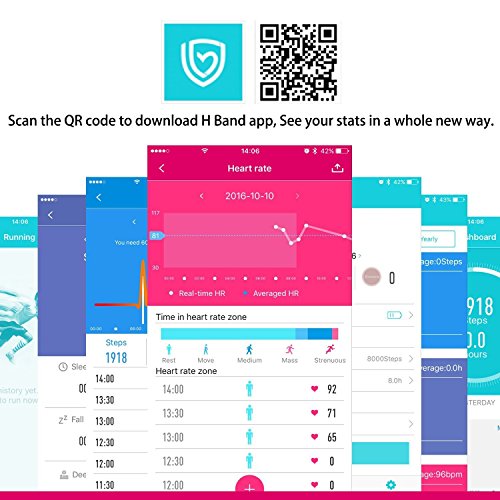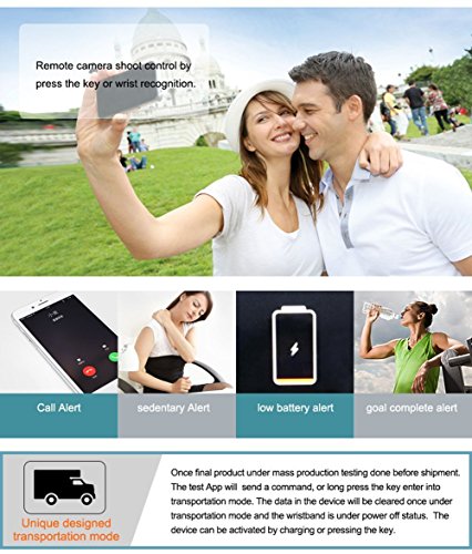 [MUTI-FUNCTION FITNESS TRACKER]This wristband can record your step, calories consumption and distance, display time and date ect. And it also have many other function like time reminder(alarm clock) and sit notification. When you have a phone call or notification, it will remind you by shaking and icons.