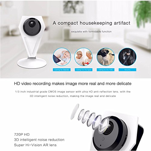 -. Feature : EXPERIENCE TRUE HD IN 960P: Featuring a 1/3 " color CMOS image sensor and GM8136S processor, the camera streams in crisp, 720P video quality. Soak in the vivid colors and rich imagery provided by a full 1280 x 720P resolution at 30 frames per second (FPS). No need to strain your eyes, lean in close, or play the guessing game when you have this level of detail / TWO-WAY AUDIO AND NIGHT VISION: Talk and listen with two-way audio, whether on your computer or Smartphone, everything you say or hear will come through clearly and instantly, so you can talk and listen like you never left. See in the dark up to 26 feet, night vision technology allows you to get a crystal clear picture, even in total darkness. The camera has 9 IR LEDs, with the ability to light up an entire room at night, you'll never be in the dark again. / QUICK WIFI INSTALLATION: The camera comes with a QR code on the side that can be scanned with a mobile device using our free app (available on IOS/Android). Say bye-bye to traditional, complex setup processes that require you to have a degree in networking. The app can be quickly and easily set up by anyone on WiFi, using a mobile device. Instantly see live video using your computer, tablet, or phone from anywhere. / REMOTE VIEWING& RECORDING: Support WiFi/3G/4G remote viewing and recording, compatible with Windows PC and Apple Mac Web Browsers (IE, Firefox, Safari and Opera) as well as IOS and Android mobile devices. Set up schedule recording and playback the videos, you can also record to a MicroSD card (not included), an FTP server, and your local computer. / MULTIPLE USES: Able to be monitored by one or multiple devices at the same time, we give you full control over how you want to use your camera, and never force you to use a specific solution. With the camera, you have full control over your account and can manage them however you'd like.