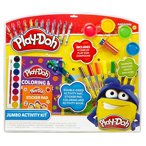 Play-Doh Jumbo Activity Kit In Clamshell Includes 4 Tubs Of 1 Oz. Play-Doh, 8 Markers, 1 Extruder, 12 Jumbo Crayons, 1 Wavy Scissors, 8 Ct Water Color Set W/Brush, Sticker Pad, Double Sided Activity Play Mat, 24 Page Coloring & Activity Book, Pdq.Feature