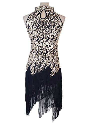 1920s vintage cocktail evening dress, art deco dress, gatsby style , sequin paisley pattern, with tassel and turtleneck.