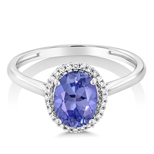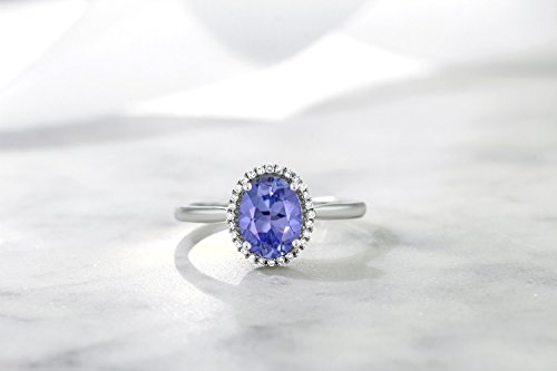 -. Title : 10K White Gold Diamond Halo Engagement Ring set with Oval Blue Tanzanite Women's Ring (1.16 Cttw, Available in size 5, 6, 7, 8, 9)