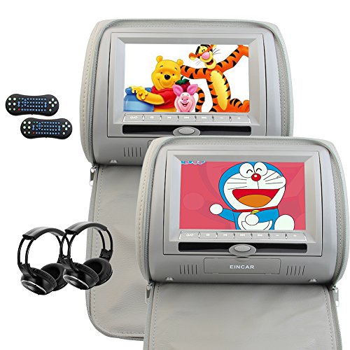 -. Title : Eincar Rockville RDP711-GR 7inch Grey Car Headrest Monitors support FM Transmitter 32Bits Games USB CD DVD Player Auto Audio Pillow Headrest + Remote Control Include IR Headphones