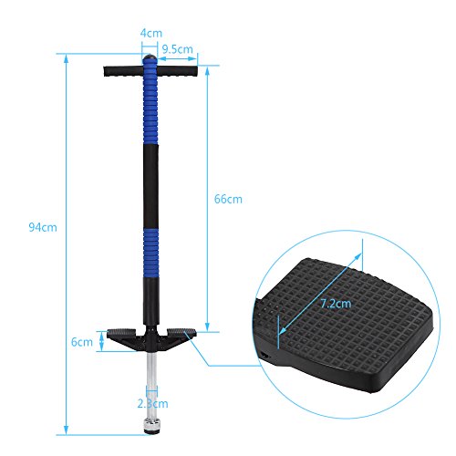 Description: This is a single bar jackhammer pogo jumper, the shaft is made of iron alloy, which is very solid and durable. Handlebar grip is made of ABS material protection cover, you will feel comfortable and it also can anti-skid. The pedal also has an excellent anti-skid effect, it can help your child not easy to fall down. The spring is made of high quality manganese steel which is very solid and durable. This jackhammer pogo jumper is fit for children over 8 years old and teenagers, can load 20-40kg. It has four functions, such as fitness training, lose weight, balance training, and help your child grow faster. Specification: Material: Iron Alloy Shaft, PP Plastic Pedal, PVC Soft Cotton Protective Cover Color: Blue, Green, Red (Optional) Weight: approx. 1.95kg Load Capacity: approx. 20-40kg Type: Single Bar Suitable Ages: 8-10 years old£¨Depending on the Specific Weight£ⓒ Total Length: approx. 94cm Note: 1. Safety protections are needed before using. 2. For the safety of you or your children, please use it on flat ground. Do not use it on a slope or uneven floor. 3. Children must be supervised / guided by their parents while using. Package includes: 1 x Jackhammer Jump Stick 0 |
