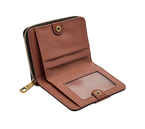 -. Feature : Measurements: 4.38"l x 1"w x 4"h / Interior details: 1 bill compartment, 5 credit card slots, 1 id window and 1 zipper pocket / Exterior details: 1 back zipper pocket