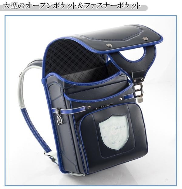 盾をモチーフにしたクールなデザインのランドセル。A4フラットファイルを収納できます。