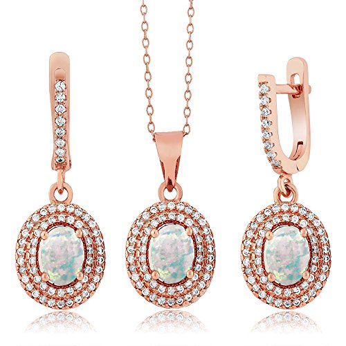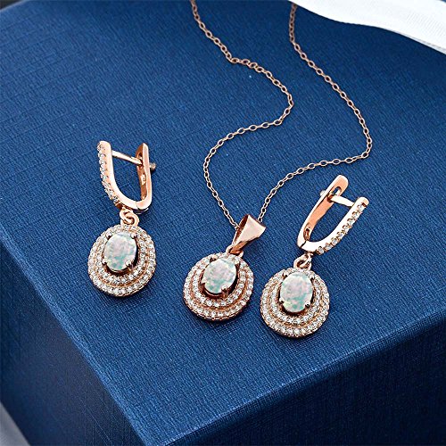 -. Title : 3.52 Ct Oval Simulated Opal 925 Rose Gold Plated Silver Pendant Earrings Set