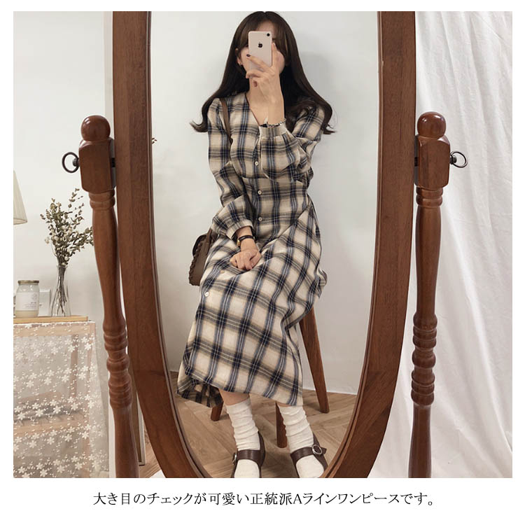 | 大人気チェックワンピースに待望のロング丈が登場!大き目のチェックが可愛い正統派Aラインワンピースです。キチンと感があるので、いろいろなシーンで使えるワンピースは1枚は持っておきたいアイテム。一枚さらりと着るだけで、美しくハイセンスなオシャレを楽しめます。 | |