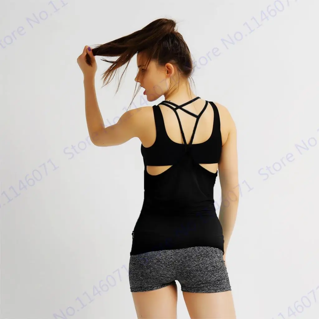 Items:Black Fitness Gym Cami Tops Tank Back Cross Jogging Tank Tops