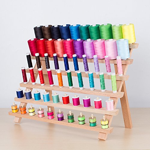HAITRAL 60-Spool Sewing Thread Rack Wooden Embroidery Thread Organizer