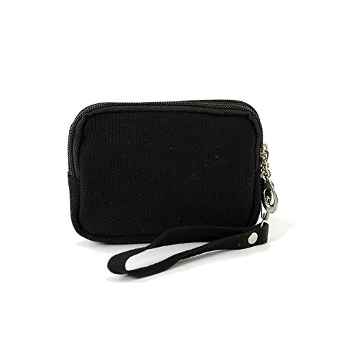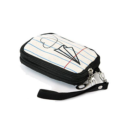 -. Feature : Measures Approx: 5.5" (L) x 1" (W) x 4" (H) / Quality Sturdy Canvas Material / Dual Top Zip Compartments / 5.5" detachable wristlet strap drop / doodle drawing designed coin purse zippered pouch