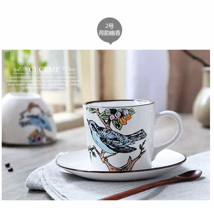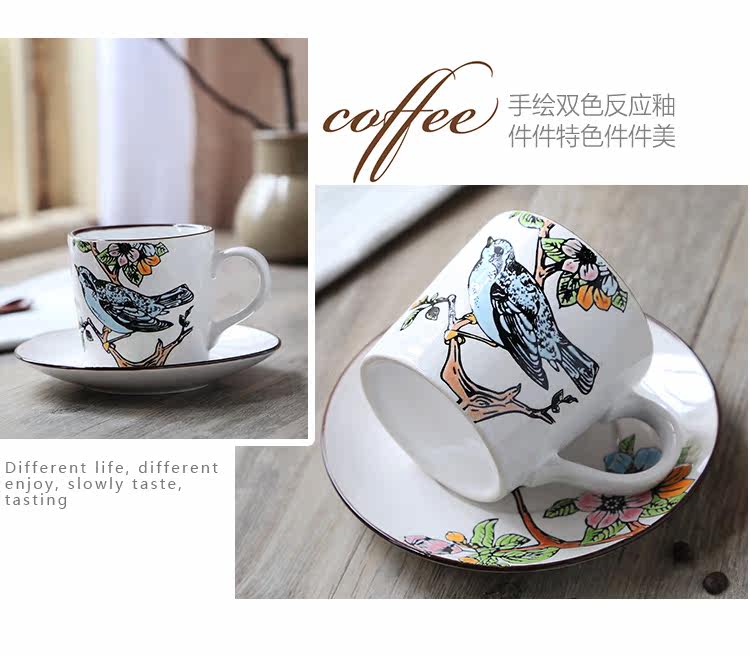 特色手绘陶瓷咖啡杯碟套装 个性创意西式咖啡杯家用花茶杯
