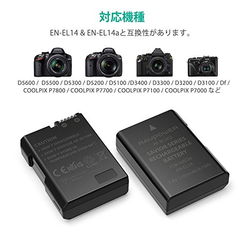 -. Title : RAVPower EN-EL14 EN-EL14a 互換バッテリー 2個 + 充電器 セット ( 大容量 1100mAh/8.1Wh USB 急速充電 ) Nikon1 Df , D5600 , COOLPIX P7800 など対応 RP-BC002